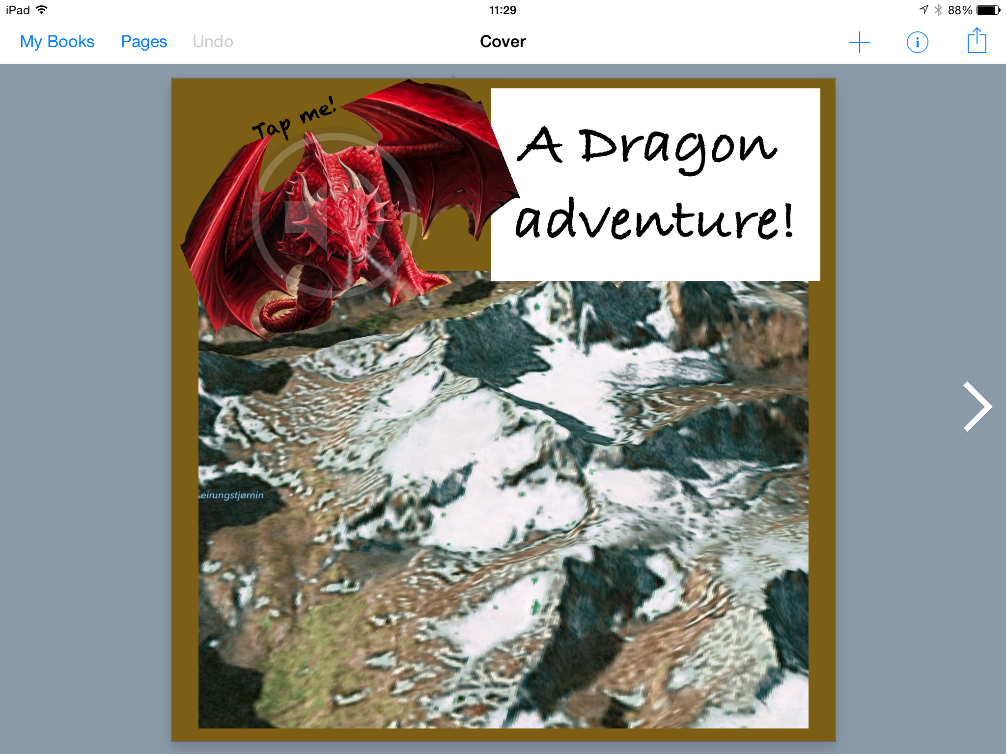 All of these we put into Book Creator to use as a front page. We used a suitable font – and even added some sound so that when you tap on the dragon it reads the title and author to you – don’t forget to click on ‘Invisible in iBooks’ to ensure the icon is hidden on publication of the book.
