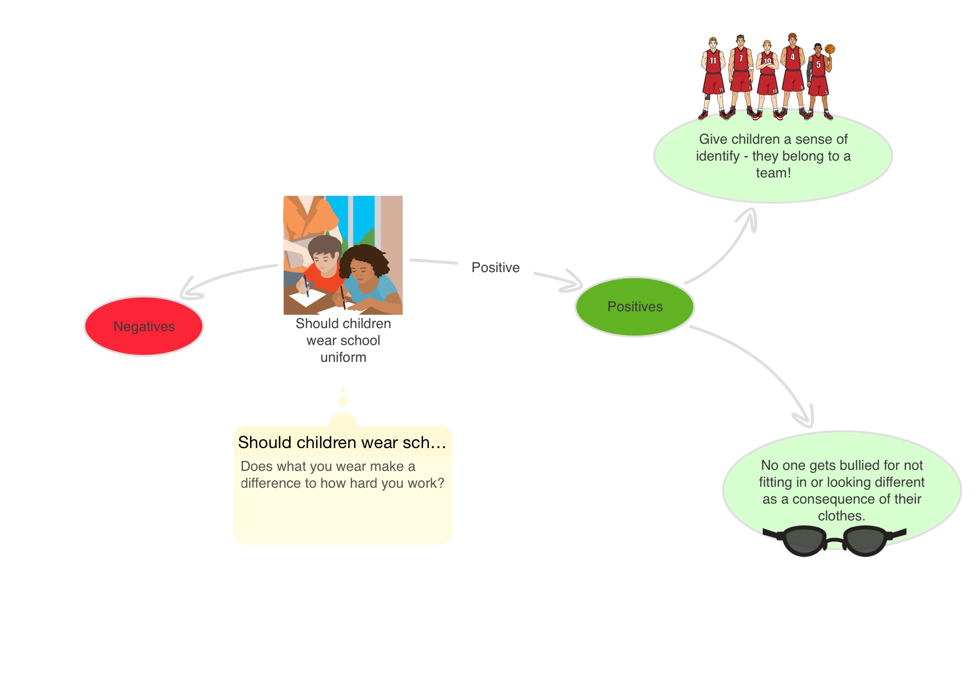 There are plenty of great Mind Mapping apps in the app store but one we’re really fond of is called ‘inspiration maps’. There is a free version and a paid version (£7.99). The free version allows you to create 5 free mind mScreen Shot 2015-03-30 at 15.50.35aps, which sadly you can’t delete,  so once you’ve made your 5 you have to buy the app. The children were asked to use ‘inspiration maps’ to plan out a balanced argument by choosing the three best arguments for and against school uniform. These could either be their own ideas or some that they had learnt from other children in the class.FullSizeRender